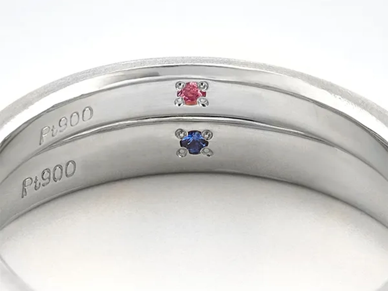 リングの内側に幸運のお守りになると言われる誕生石をセットすることができるサービス(有料)です。