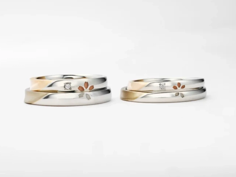 プラチナPt950、桜花ゴールド、イエローゴールド、シャンパンゴールドからおふたりに合う素材をお選びいただけます。