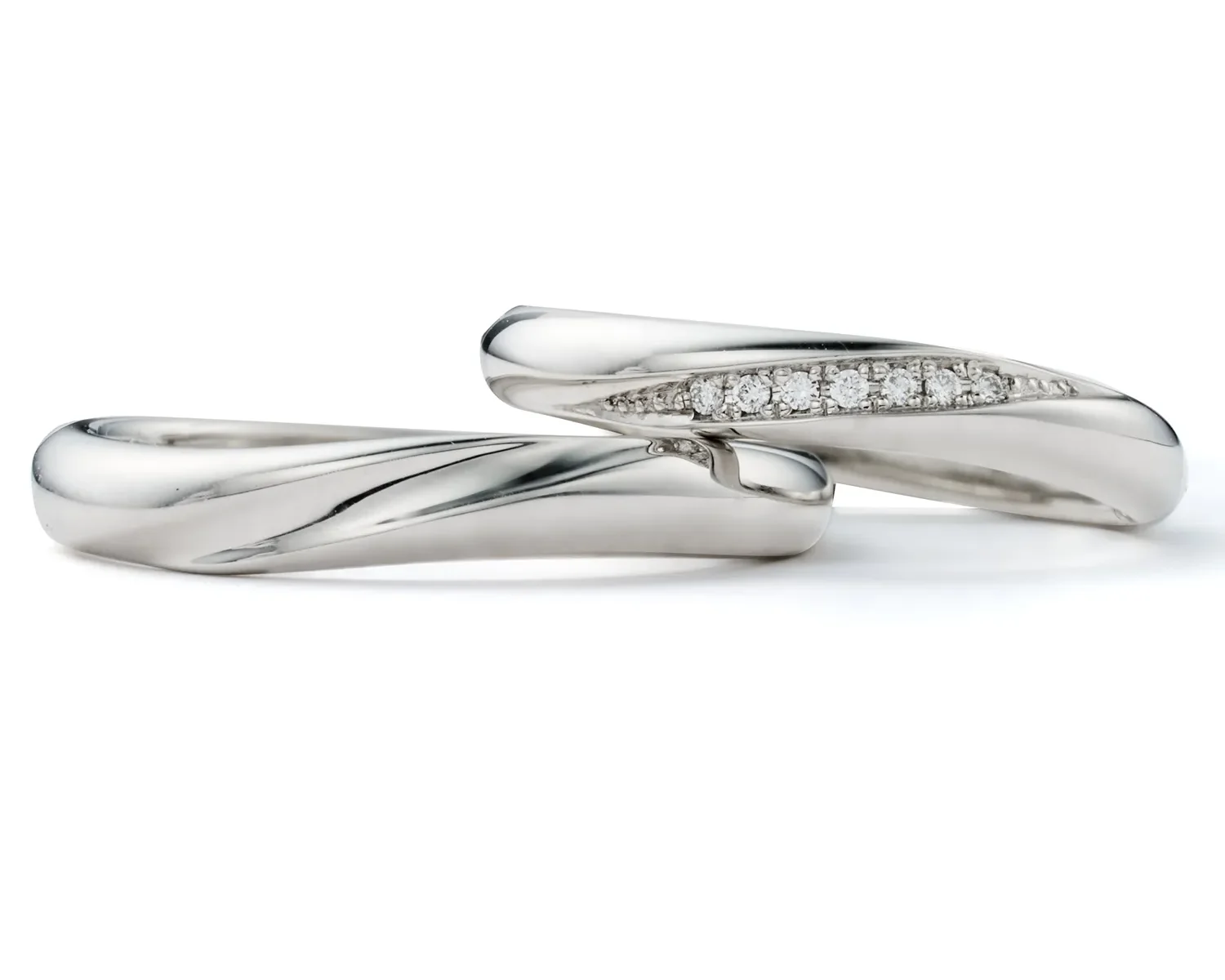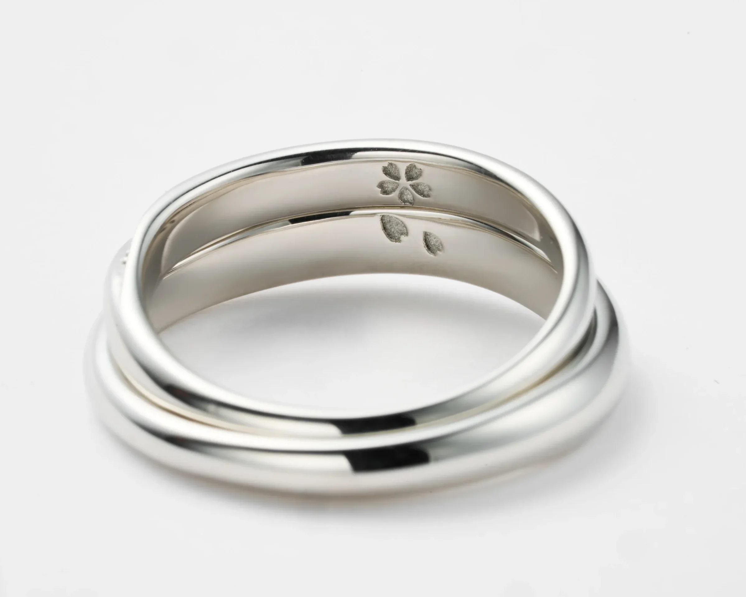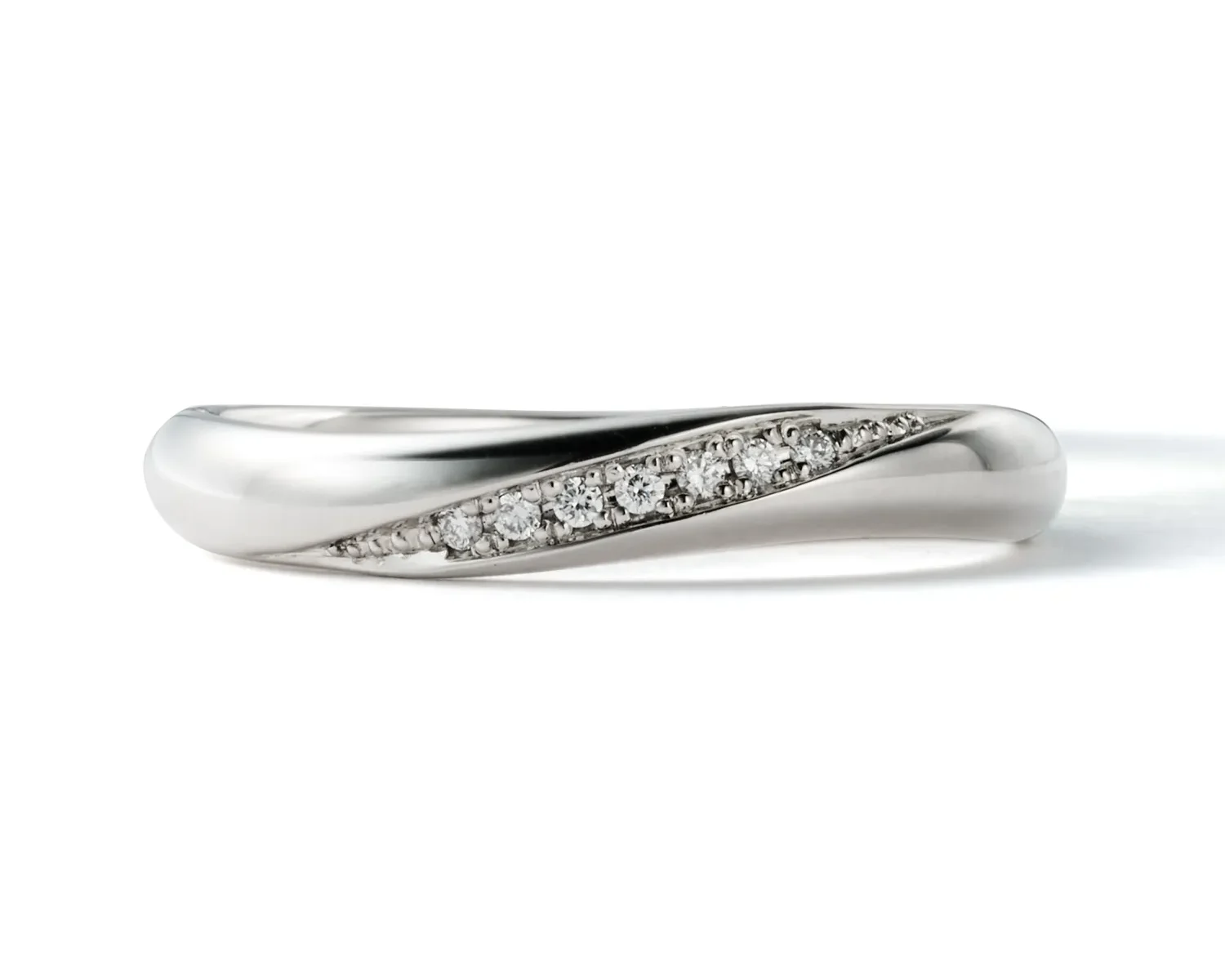 瀬音 桜影 瀬音 桜影 SEOTO – SAKURAKAGE 【品番】 TUM052 WD, TUM052 G Women’s Pt950 ¥154,000 (税込) (細幅:¥132,000) ホワイトダイヤ Men’s Pt950 ¥143,000 (税込) (細幅:¥132,000) 川のせせらぎと水面に舞い流れる桜影の情景から着想を得たリング。 右肩あがりの流れは、時とともに輝きを増すふたりの人生をイメージしています。リングを重ねた内側には川面にたゆたう桜の花びらが刻印されています。