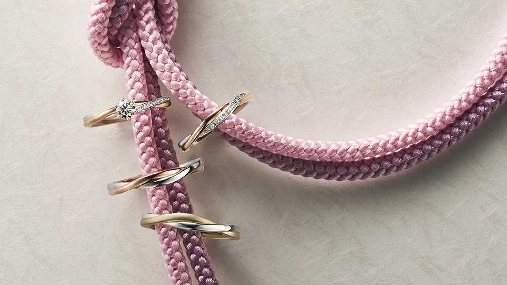 紡ぎ輪の「桜」は、新たな門出を象徴する特別なモチーフ。 日本の美意識を象徴する繊細な桜を、職人の技で優雅にかたどり 一瞬の美しさを永遠のかたちに閉じ込めました。