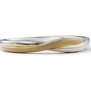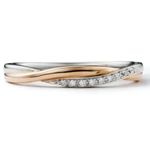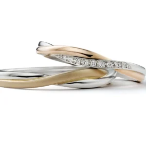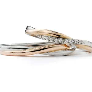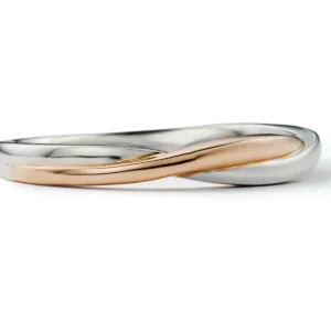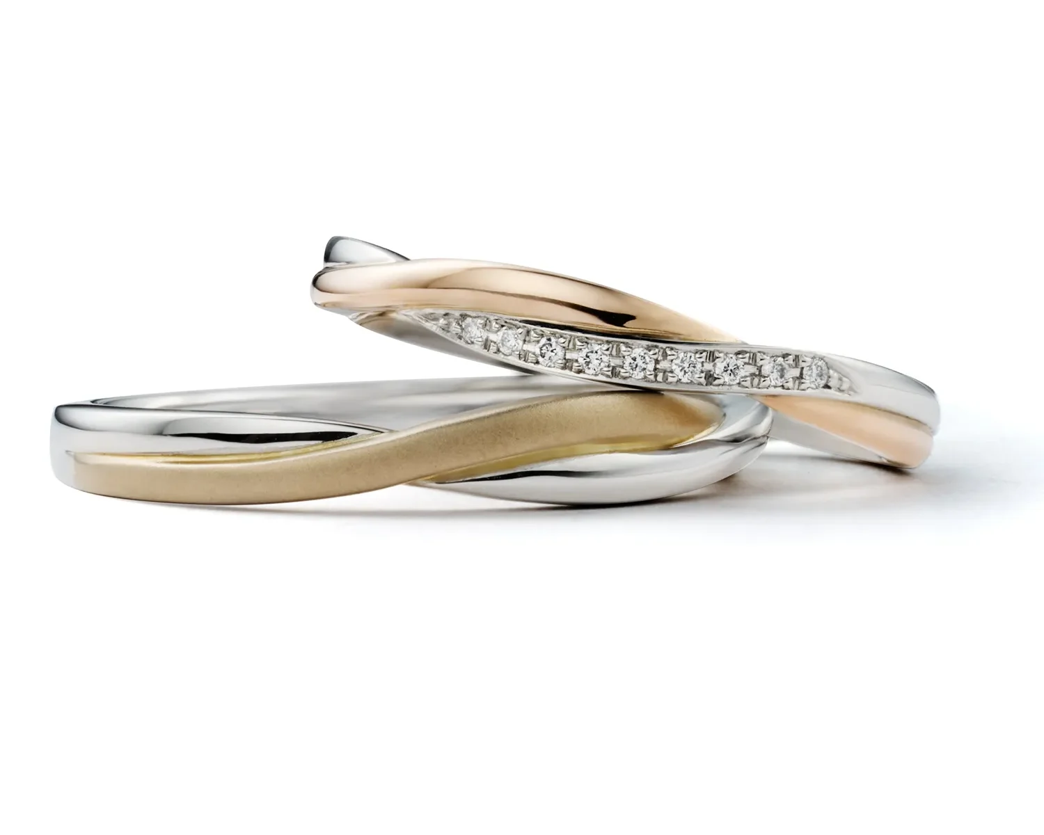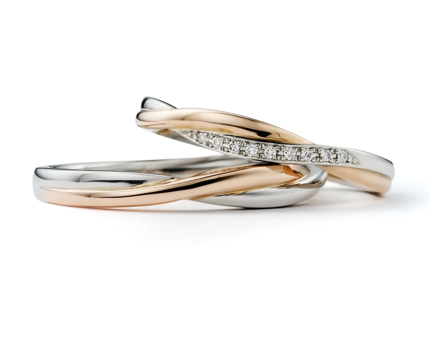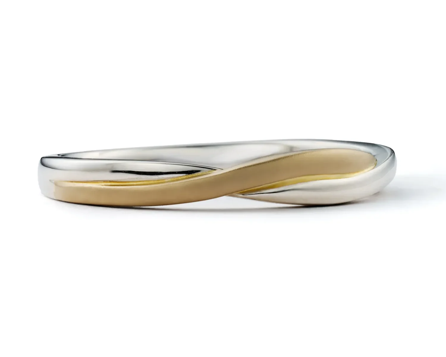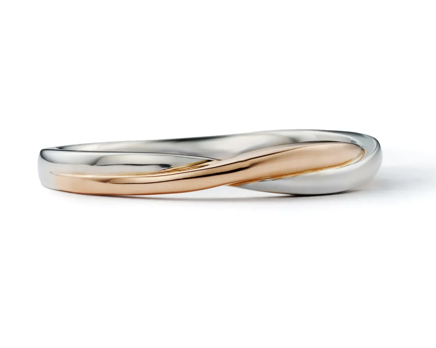 異なる二色の素材が織りなす綾のようなコンビネーションでふたりの想いが紡がれる姿を表現したマリッジリング。